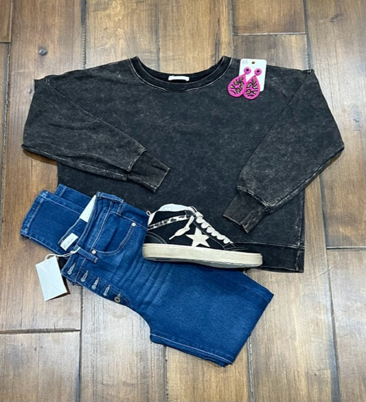 Acid Wash Boat Neck Pullover